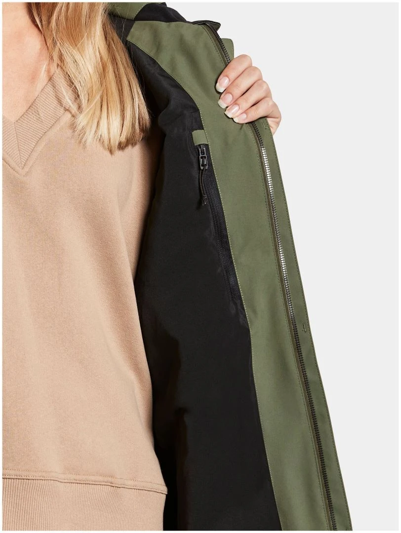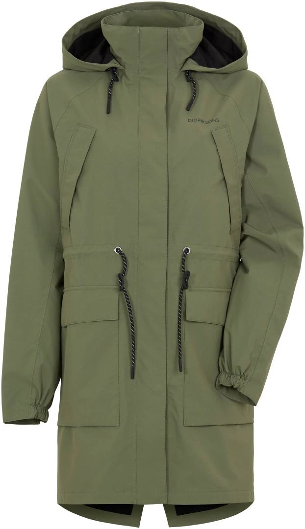 Classic everyday parka in relaxed fit, adjustable at waist., Soft polyester weave with dull surface (cotton touch). Colour: 060 Black – Solution dyed, Relaxed fit / Straight shape, Reflective details: = reflective prints at front chest and back shoulder, on front zipper pullers